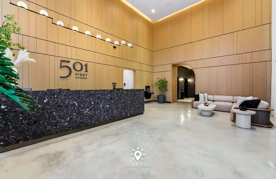 An oven and a dishwasher are provided in an equipped kitchen for guests who wish to prepare their own meals. The apartment is only a few steps from Biscayne Boulevard & Northeast 6th Street bus stop.